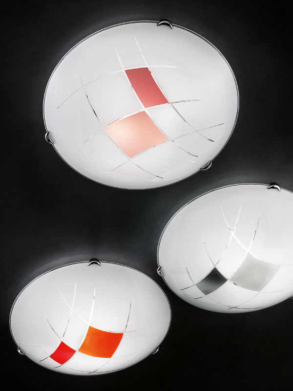 Diffusore in vetro extrachiaro inciso, decorato in arancio, rosa oppure grigio.